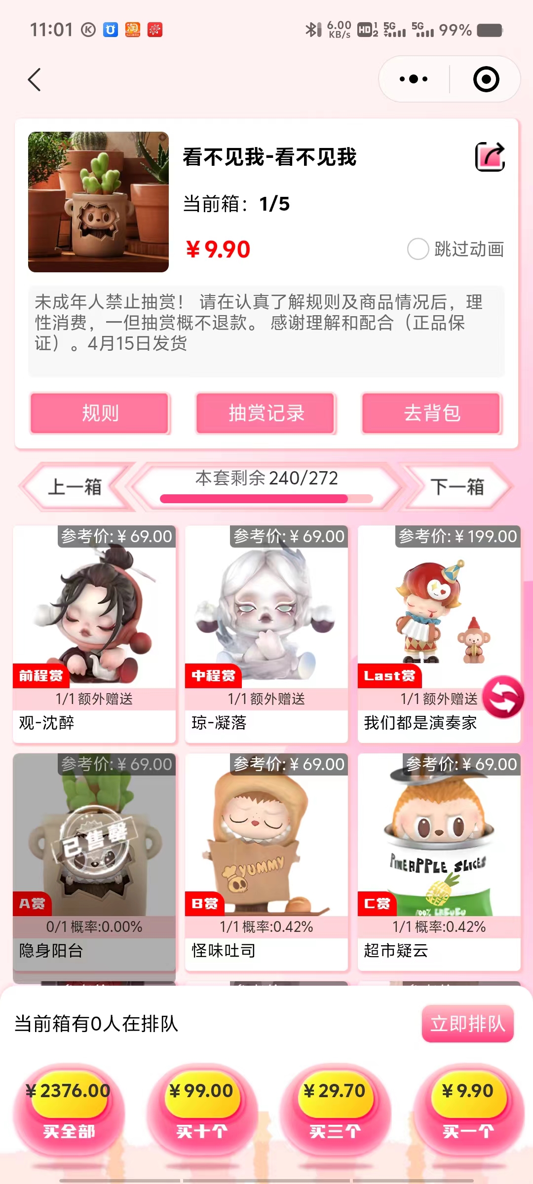 合规运营是小程序的核心竞争力之一,小程序严格遵循《盲盒经营行为规范指引》,所有盲盒的抽盒概率均公开透明,在首页、支付页多重公示,让用户清晰了解每一次抽盒的概率,杜绝虚假宣传。同时,引入区块链存证技术,抽盒结果通过SHA-256哈希生成唯一交易凭证,用户可实时查询验证,有效降低假货投诉率,保障用户的合法权益。针对未成年人,小程序设置实名认证与消费限额,未成年人每日消费不超过50元,从源头规避不良消费风险,让用户放心参与。