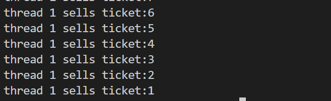 cpp#include <stdio.h> #include <stdlib.h> #include <string.h> #include <unistd.h> #include <pthread.h> #include <sched.h> int ticket = 100; pthread_mutex_t mutex; void *route(void *arg) { char *id = (char *)arg; while (1) { pthread_mutex_lock(&mutex); if (ticket > 0) { usleep(1000); printf("%s sells ticket:%d\n", id, ticket); ticket--; pthread_mutex_unlock(&mutex); } else { pthread_mutex_unlock(&mutex); break; } } return nullptr; } int main(void) { pthread_t t1, t2, t3, t4; pthread_mutex_init(&mutex, NULL); pthread_create(&t1, NULL, route, (void *)"thread 1"); pthread_create(&t2, NULL, route, (void *)"thread 2"); pthread_create(&t3, NULL, route, (void *)"thread 3"); pthread_create(&t4, NULL, route, (void *)"thread 4"); pthread_join(t1, NULL); pthread_join(t2, NULL); pthread_join(t3, NULL); pthread_join(t4, NULL); pthread_mutex_destroy(&mutex); }