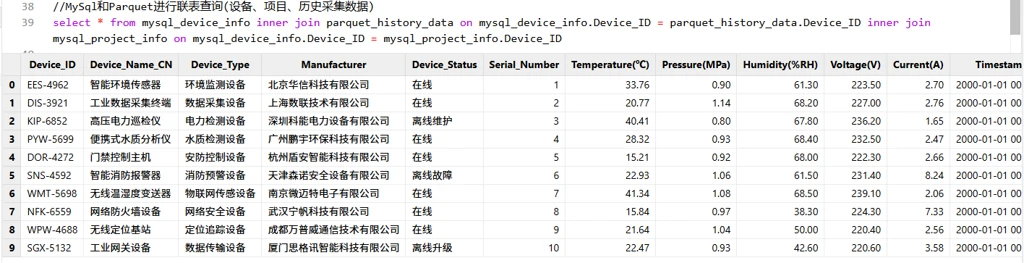 //MySQL和Parquet进行联表查询(设备、项目、历史采集数据)