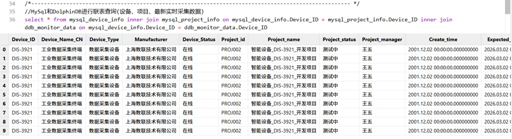 //MySQL和DolphinDB进行联表查询(设备、项目、最新实时采集数据)