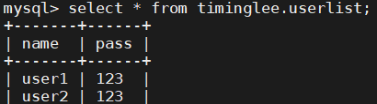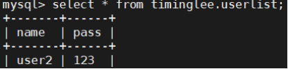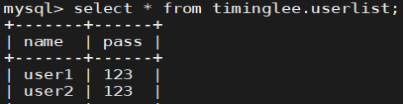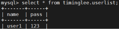 > INSERT INTO timinglee.userlist values ('user1','123');