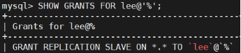 > CREATE USER rpl_user@'%' IDENTIFIED BY 'lee';