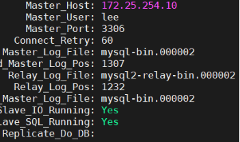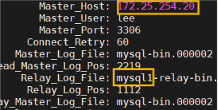 > CHANGE MASTER TO MASTER_HOST= '172.25.254.10',MASTER_USER='lee',