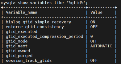 > show variables like '%gtid%'; 在三台主机中分别查看gtid模式是否开启