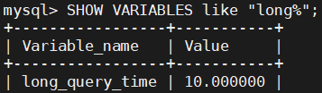 > SHOW VARIABLES like "long%"; #慢查询阈值