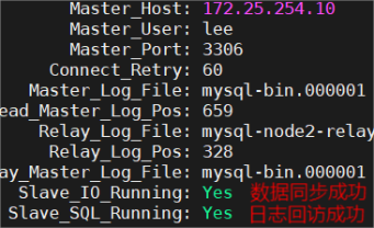 MASTER_PASSWORD='lee',MASTER_LOG_FILE='mysql-bin.000001',MASTER_LOG_POS=659;