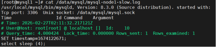 > SET GLOBAL slow_query_log=ON; 开启慢查询日志