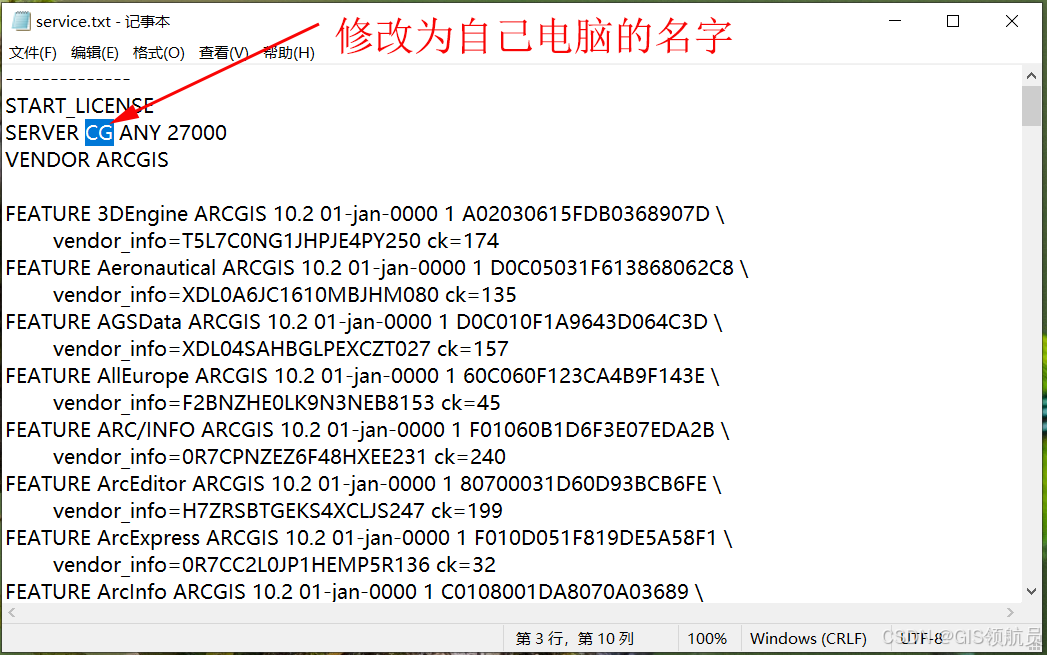 - 将文件第一行中的 CG 修改为你自己电脑的计算机全名(例如