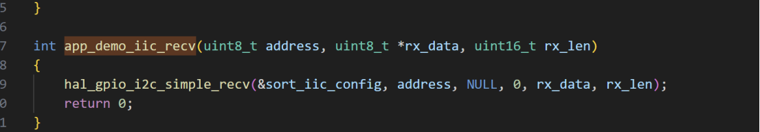 数据发送用于向从设备写入配置、指令或数据,这里用户只需要调用hal_gpio_i2c_send()数据发送函数即可完成标准IIC数据发送。