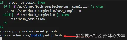 echo "source ~/learn_ws/install/setup.bash" >> ~/.bashrc