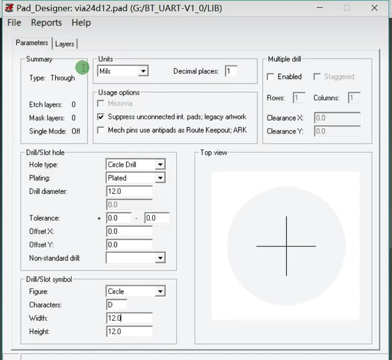 打开Pad Designer,新建一个,这个意思是外径24mil,内径12mil的过孔,其实和通孔焊盘一回事: