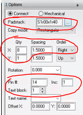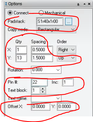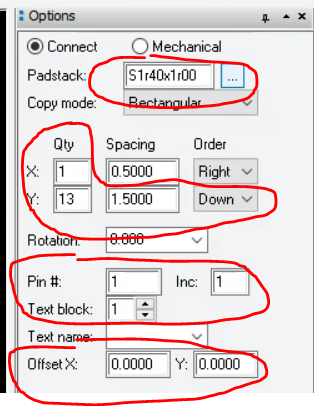 - X:1,Y:13,表示该焊盘阵列横着1个,竖着13个;