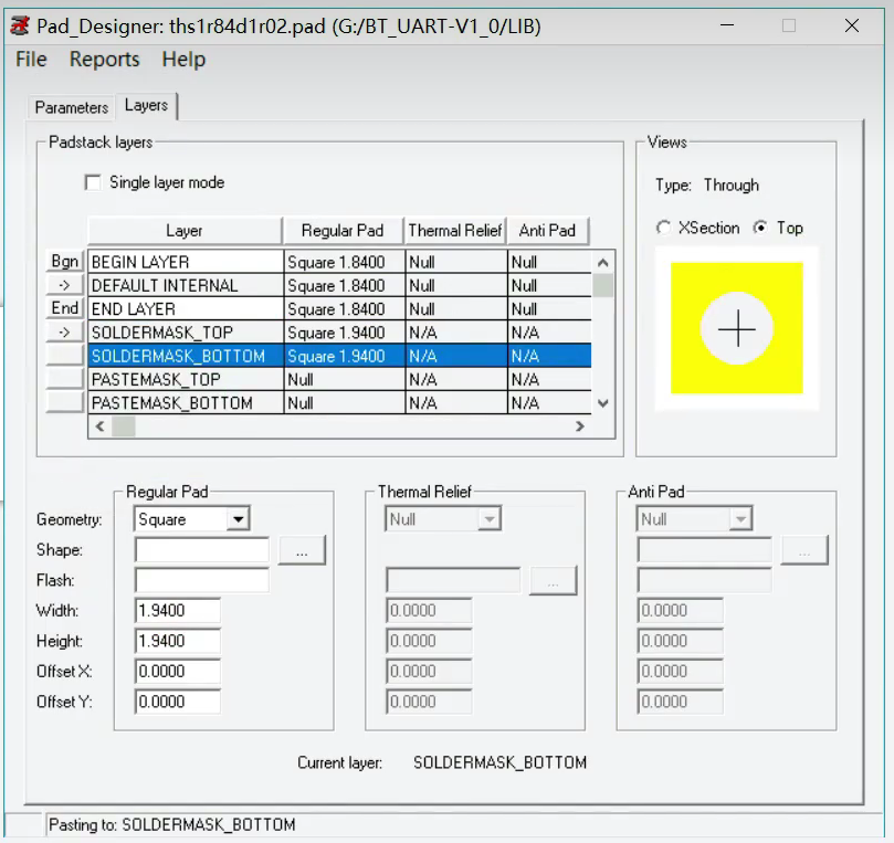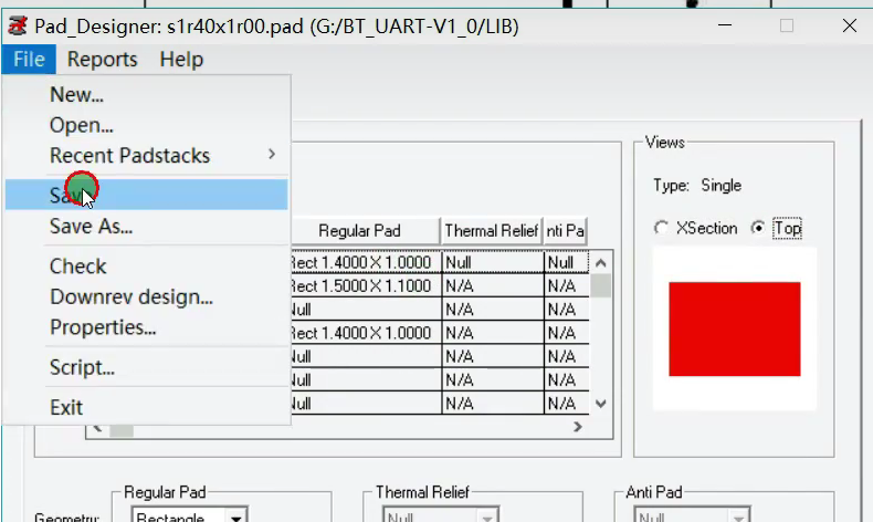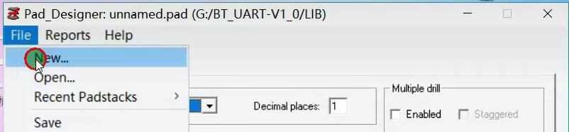 打开Pad Designer,新建并命名,S代表贴片,1.4mm记作1R40,1mm记作1R00。S1R40X1R00就表示一个宽为1.4mm,高为1.0mm的焊盘,点击Browse可以选择存储路径,一般存在文件夹的LIB里: