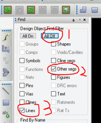 allegro里的find相当于嘉立创里的过滤,All off就是全不选,然后选择Lines就可以框选丝印了。复制一份后修改位装配层: