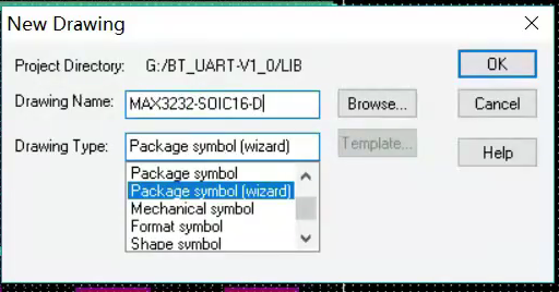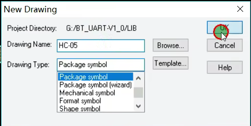 手动创建封装选择下面这项,并输入封装名称,要和原理图中对应。记得点击Browse设置库路径: