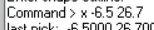在下方Command里输入坐标:小写x + 空格 + -6.5 + 空格 + 19.75 + 回车: