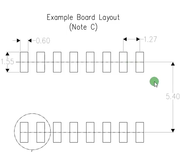回到这个蓝牙模块的封装,看一下间距如何取值。我们将底部中间区域看做坐标原点: