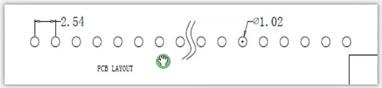 假设要制作这样一个间距2.54mm,内孔直径1.02mm的焊盘,注意这里是直接告诉我们画1.02,假如是告诉我们实物是0.8,我们就自己加0.2,画1差不多了。