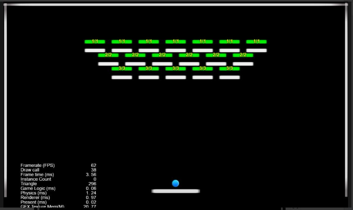 这里AI是用代码创建的砖块,个人还是喜欢在编辑器里面创建,暂时按它的来,我按它的砖块BrickWithHealth.ts的代码的结构给砖块加了血条和血量显示,效果如下: