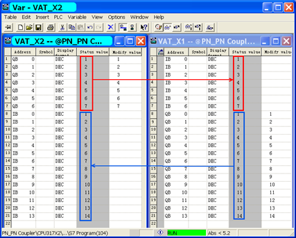 图3所表示的PN/PN Coupler在PROFINET网络1中Device name是"Coupler-X1",配置输出数据16字节,输入数据8字节。相应PROFINET网络2中对应为输入数据16字节,输出数据8字节。PROFINET网络2中PN/PN Coupler的Device name是"Coupler-X2"。