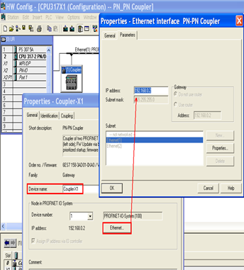 接下来双击网络上的PN/PN Coupler在弹出的属性对话框中设置Device name和IP地址。