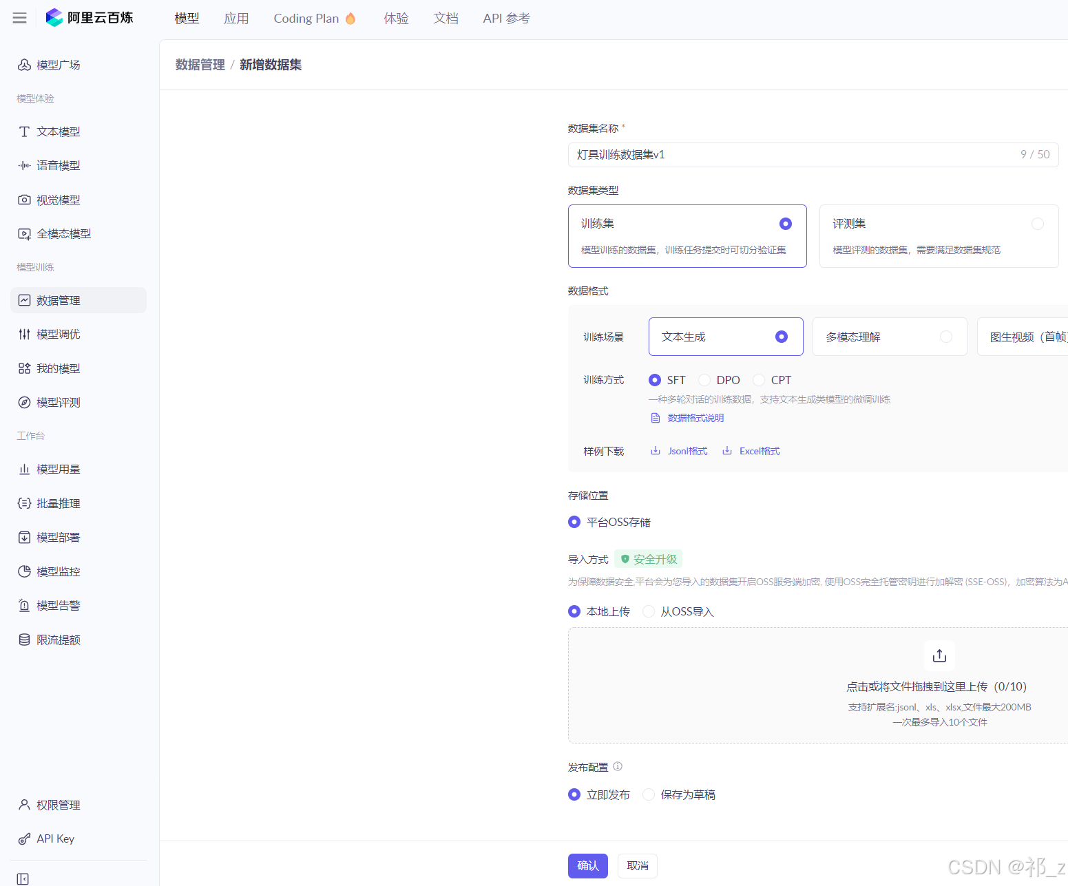 阿里云百炼提供了三种训练方式,每种训练方式需要的数据集内容格式不一样。