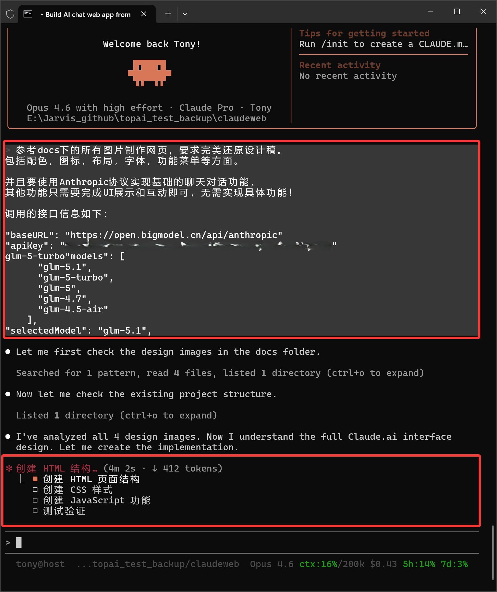 然后说,它已经分析了四张设计稿,并完全理解了界面设计,开始实现。