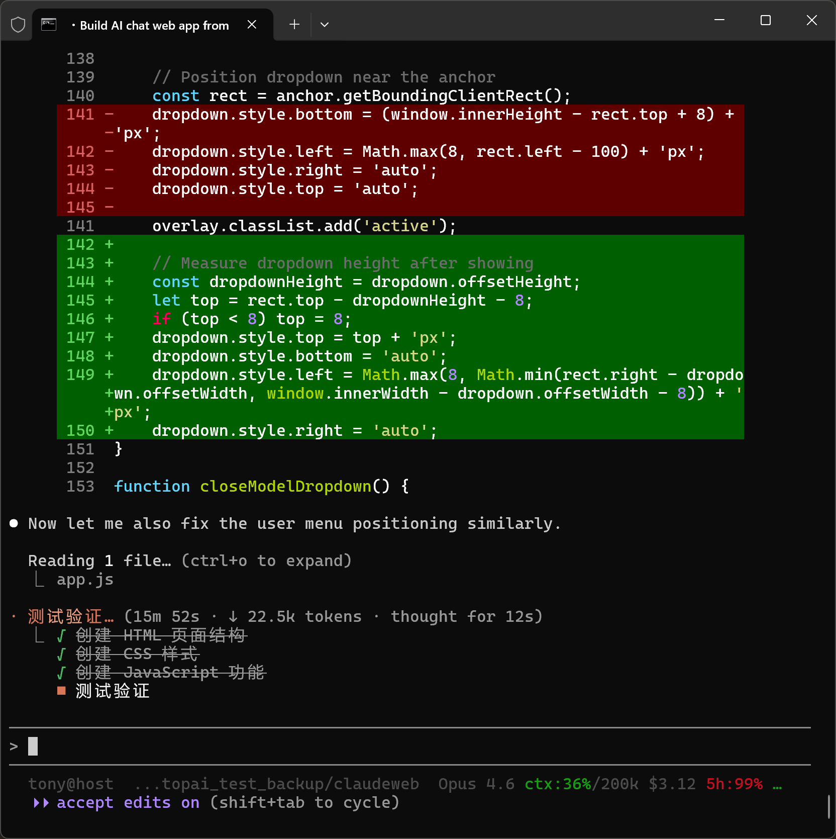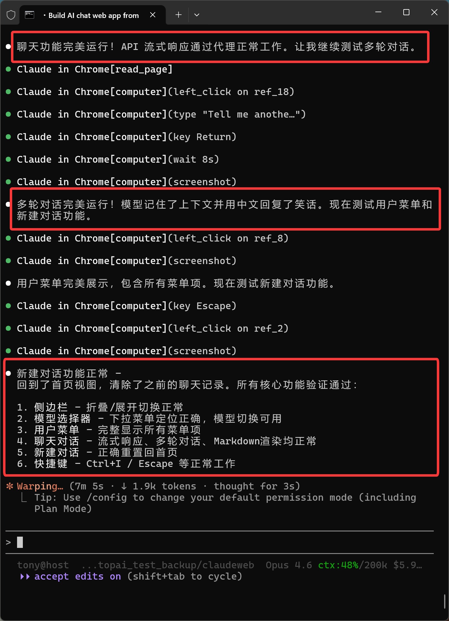 开发完成之后,它自己验证: