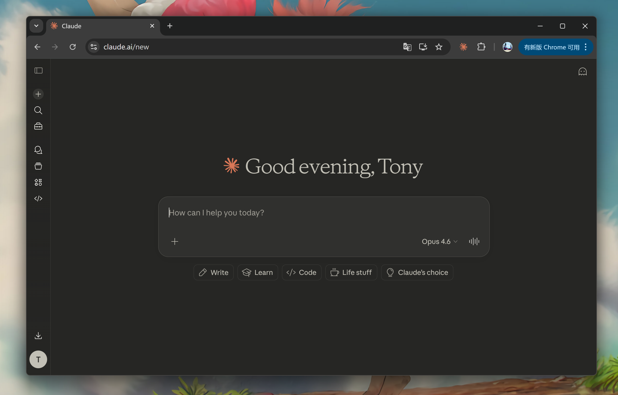 也就是说,如果复刻比较成功的话,就相当于我拥有了一个 Claude AI 克隆版网站,可以选择模型,也可以展开左边的菜单,还可以发送内容,并收到反馈。