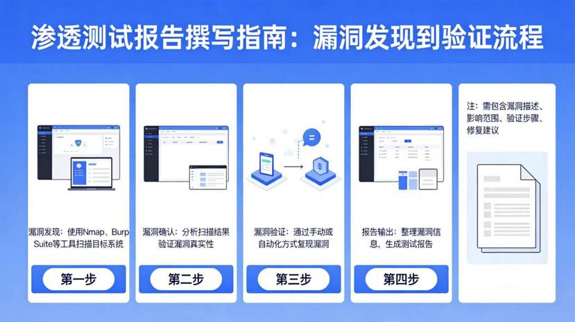 渗透测试报告的核心是"如实记录漏洞、清晰呈现流程",很多人觉得撰写复杂,其实只要抓住"漏洞发现---漏洞验证---报告呈现"三个核心环节,就能写出规范且易懂的报告。全程无需堆砌专业术语,重点是把"怎么找到漏洞、怎么确认漏洞、怎么说明漏洞"讲清楚,下面结合完整流程,通俗拆解撰写要点。