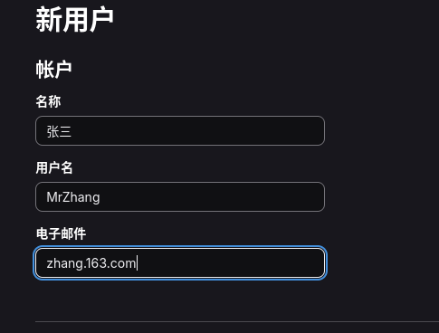 然后再进入的界面填写关键信息,其实都可以随便写,只是如果邮箱是假的,我们没办法通过邮件获得新用户的初始密码,不过没有关系,后续我们依然可以在root账号设置初始密码: