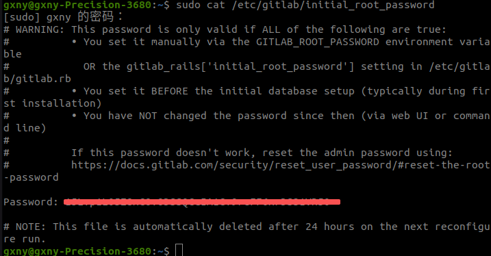 sudo cat /etc/gitlab/initial_root_password
