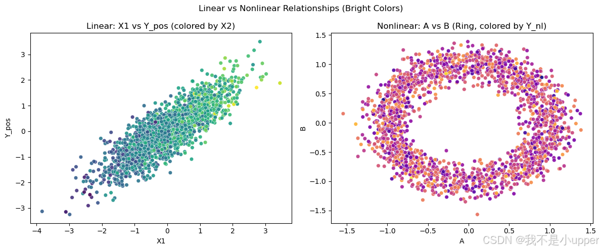 线性 vs 非线性对比散点: