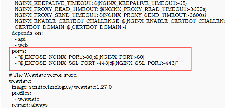 "8080:80": 左边是电脑的端口,改成8080;右边是容器的80,一定不能改!