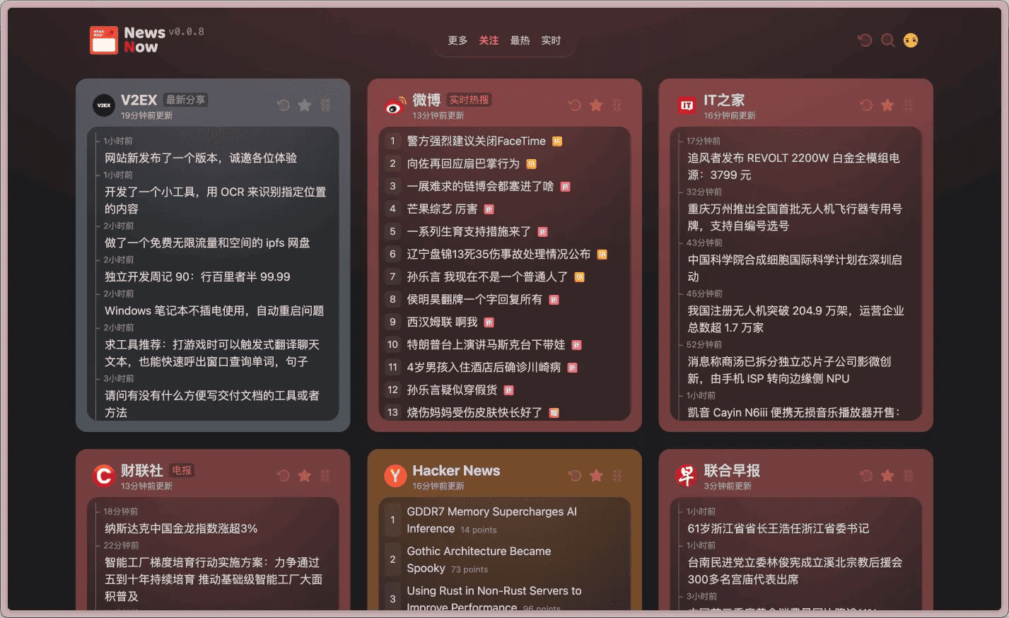 GitHub 地址 → github.com/ourongxing/newsnow