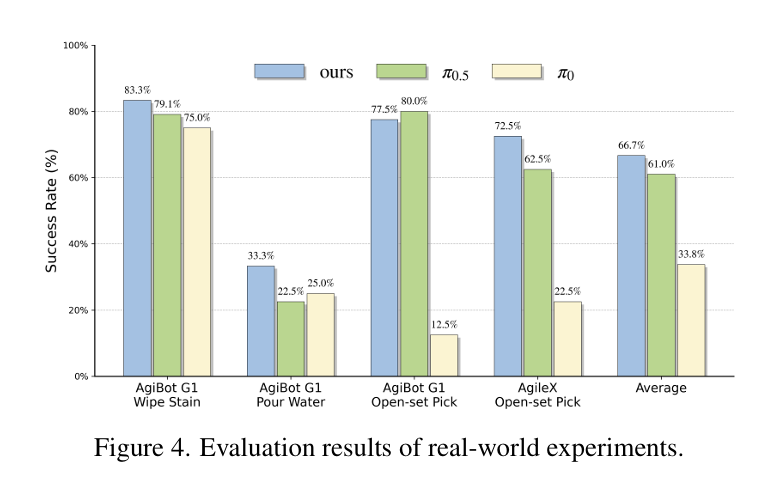 双路径融合后,机器人从 "边感知边反应" 的被动策略,升级为先形成可执行运动方案、再精准落地动作的主动具身智能体。