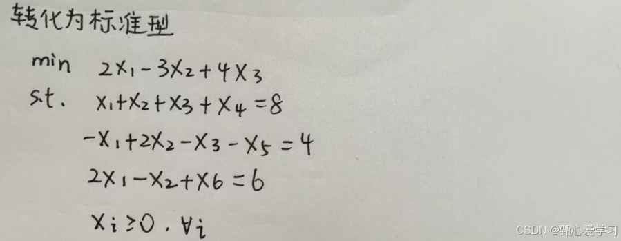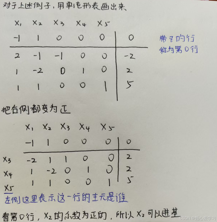 如果最开始不是标准型,要转化为标准型再画单纯形表
