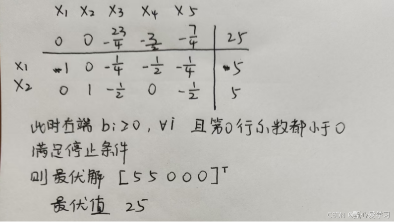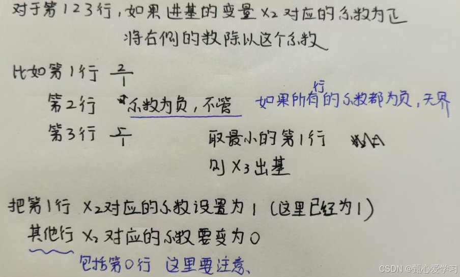 出基变量选取b最小的那一行对应的变量,对于这一行,进基变量选择左侧的数为负数的变量(这里要竖着算比值)