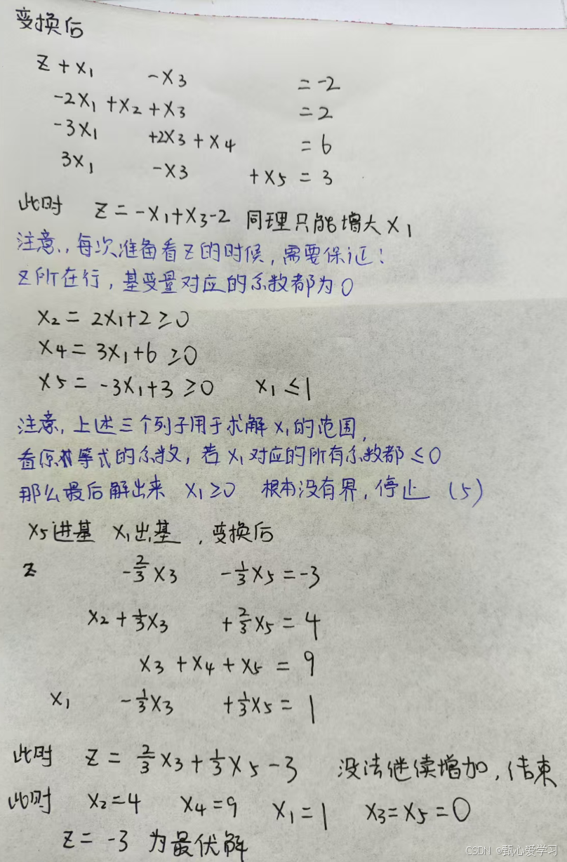 这里选进基变量就是选的b最小的行,或许可以理解为优先调整远离最终我们>=0目标的