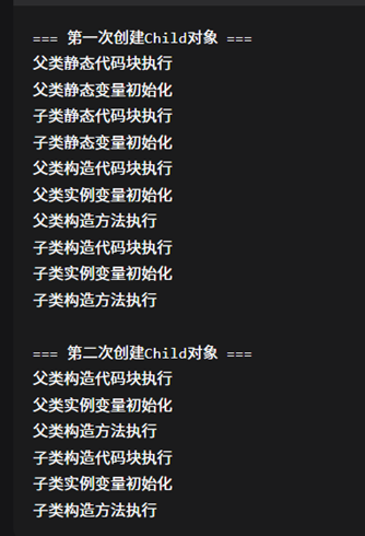 System.out.println("\n===== 第二次创建Child对象 ===");