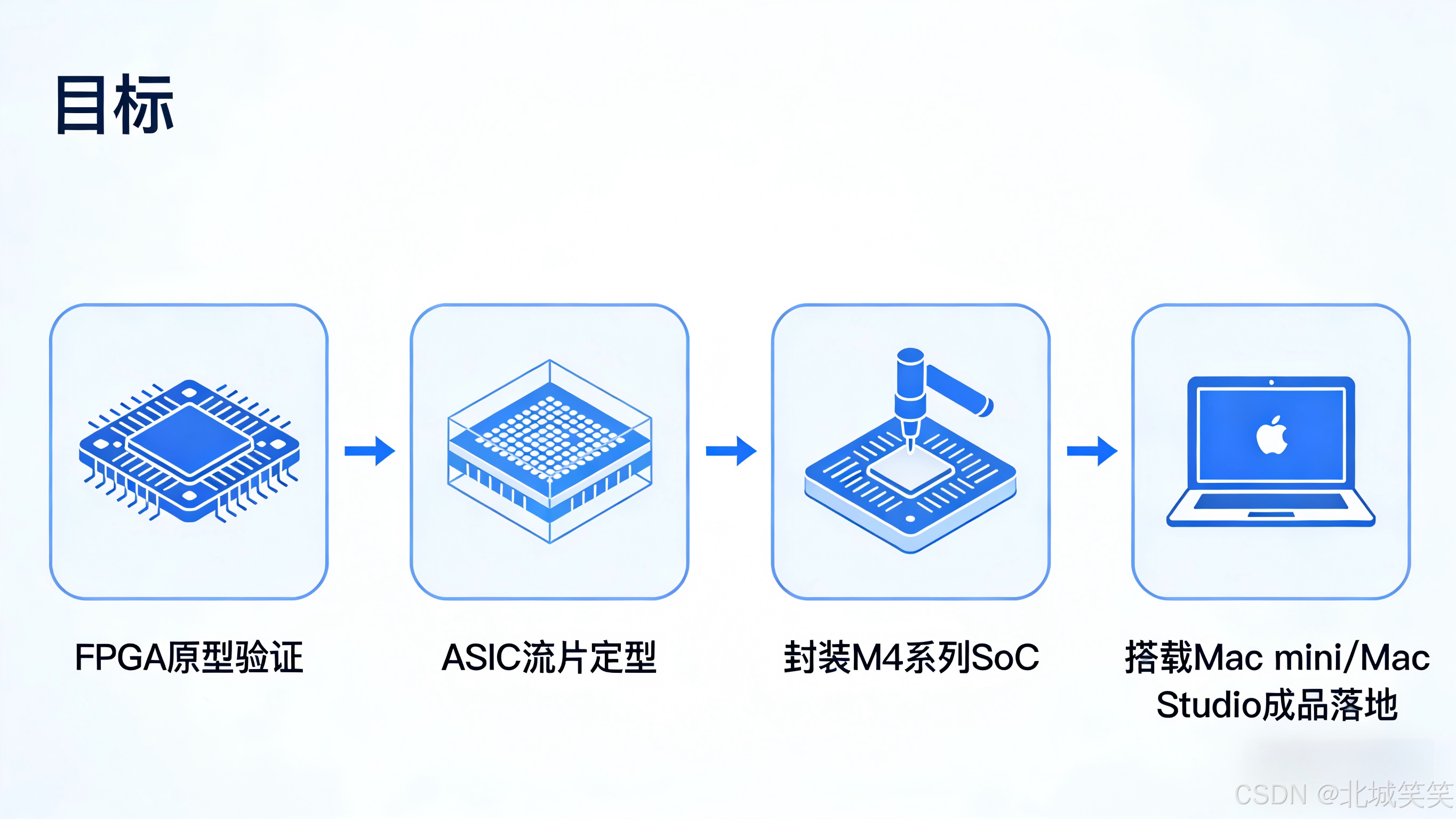 这类定制化ASIC硬核(尤其是M4系列SoC的复杂架构),在流片前必须通过FPGA搭建原型,验证CPU/GPU核心逻辑、时序兼容性、接口通断,避免流片失败,降低试错成本------苹果在研发M4 Ultra的UltraFusion互连技术时,就是通过FPGA验证双芯片协同的稳定性,确保其性能翻倍且无兼容性问题。