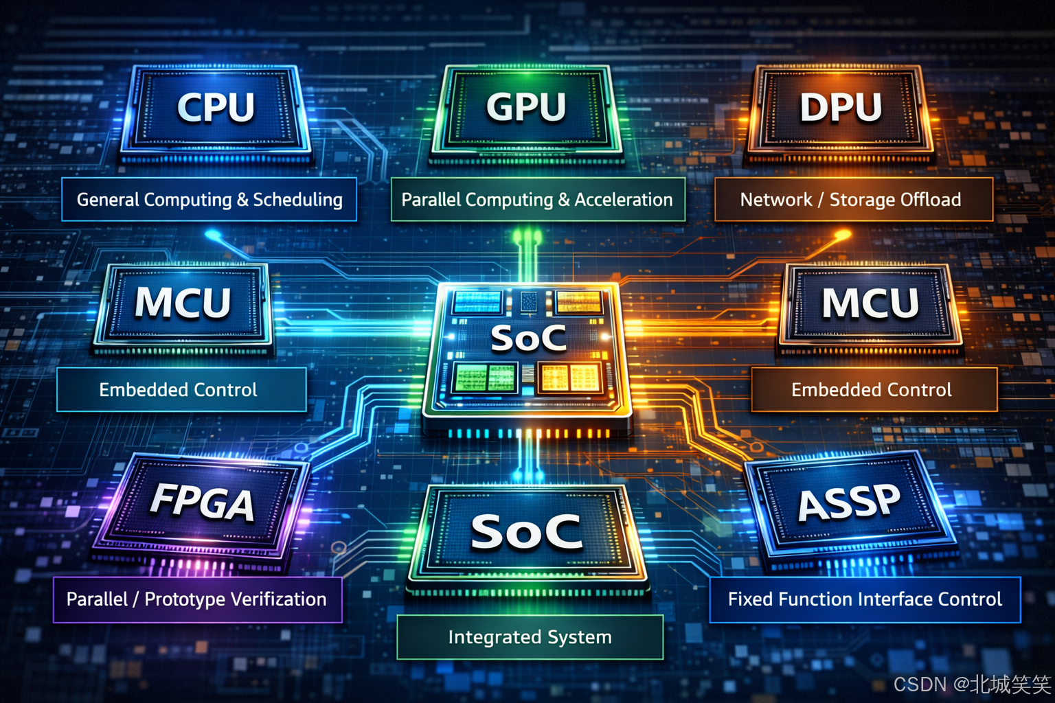 实际研发选型的本质,是在 性能、功耗、成本与灵活性之间进行工程权衡;不同芯片形态(CPU / GPU / DPU / MCU / ASSP / SoC / FPGA)并无绝对优劣,关键在于是否匹配具体场景。理解各类芯片的 架构边界及其协同方式,才是系统级设计能力的核心。