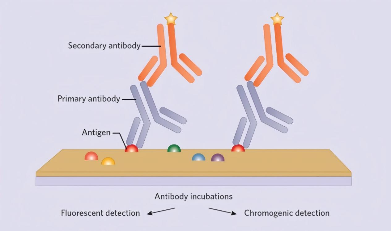IHC检测基于抗体与抗原之间的特异性识别。实验流程中,首先通过固定剂保存组织形态并稳定蛋白结构,随后利用抗体与目标蛋白结合,再通过酶催化或荧光标记系统将结合信号转化为可视化的图像。
