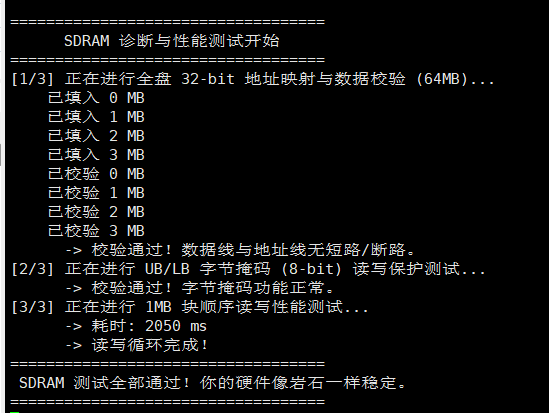 我们也把之前的SDRAM的测试程序给做完善,