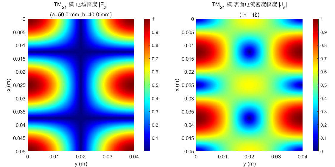 title(sprintf('TM_{%d%d} 模 表面电流密度幅度 |J_s|\n(归一化)', m, n));