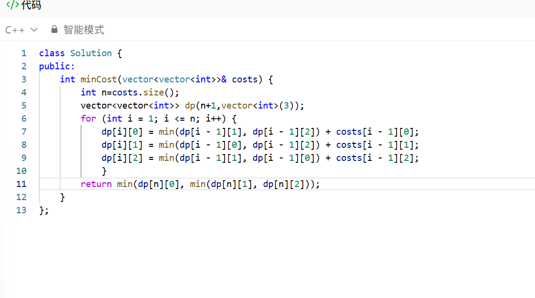int minCost(vector<vector<int>>& costs) {