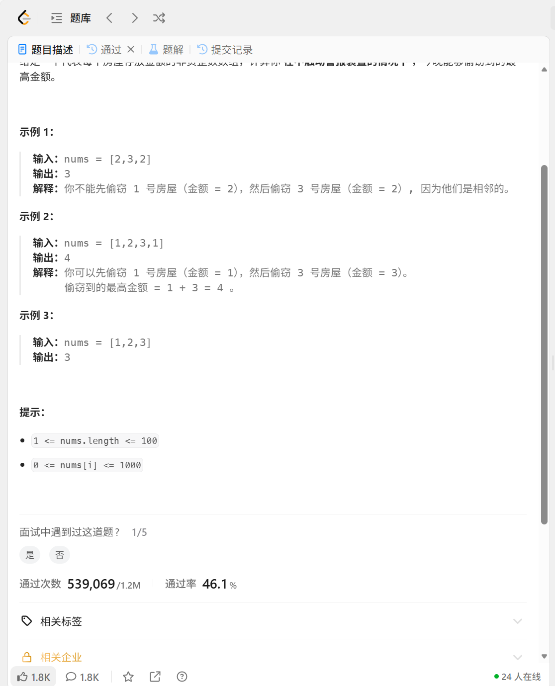 int rob(vector<int>& nums) {