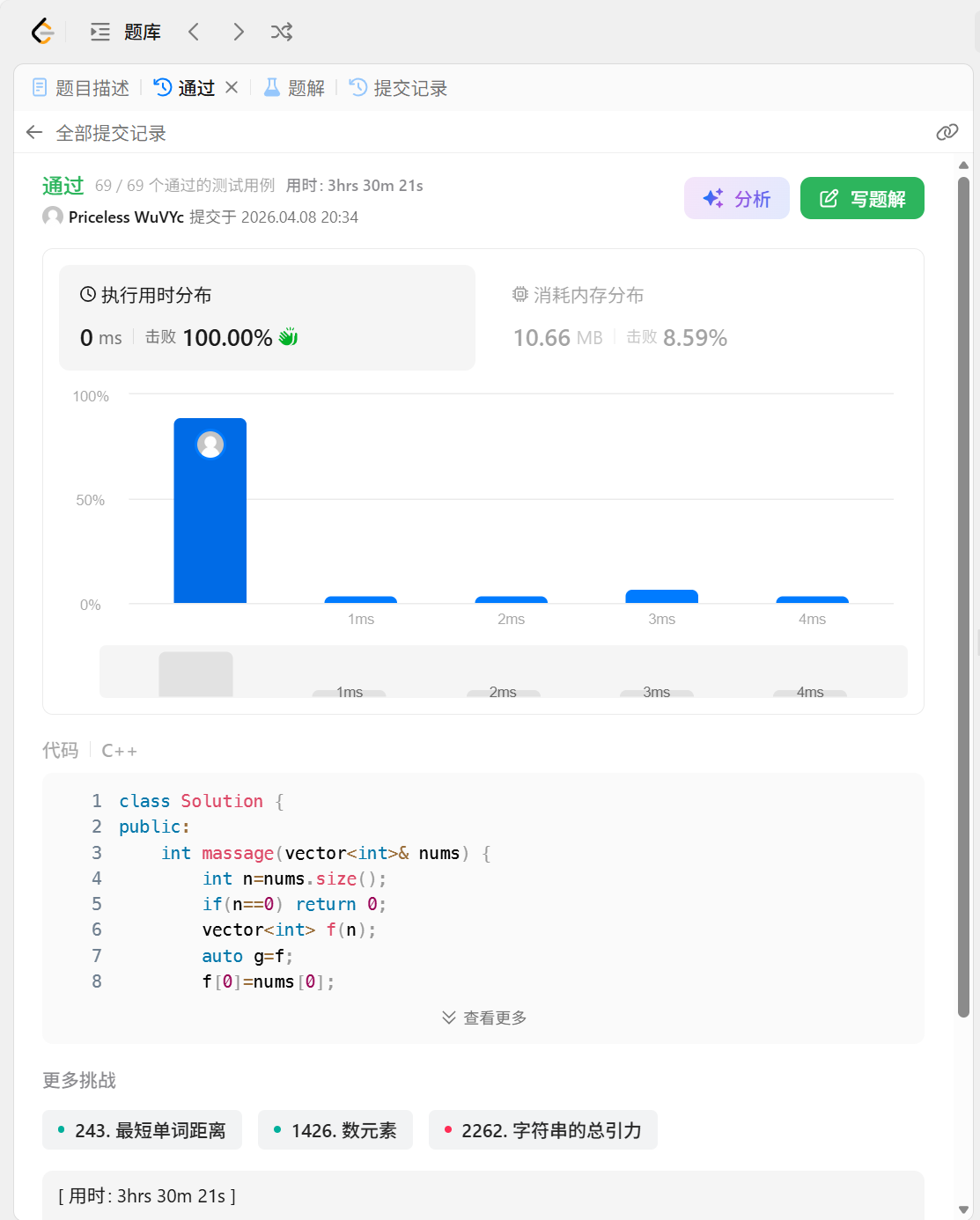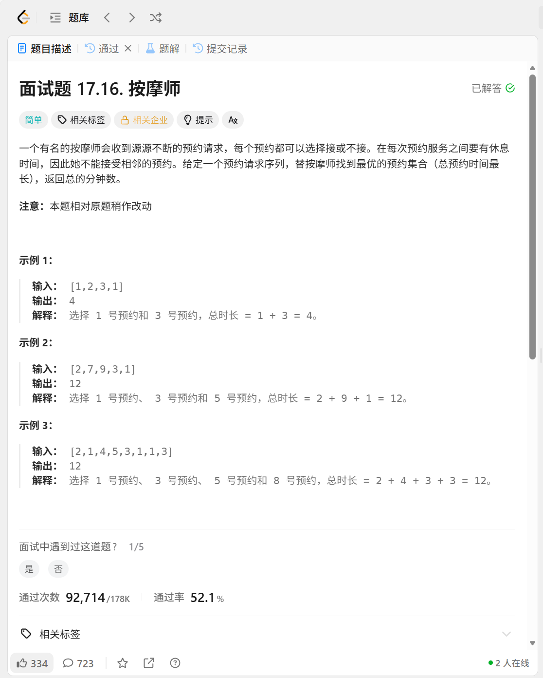 int massage(vector<int>& nums) {