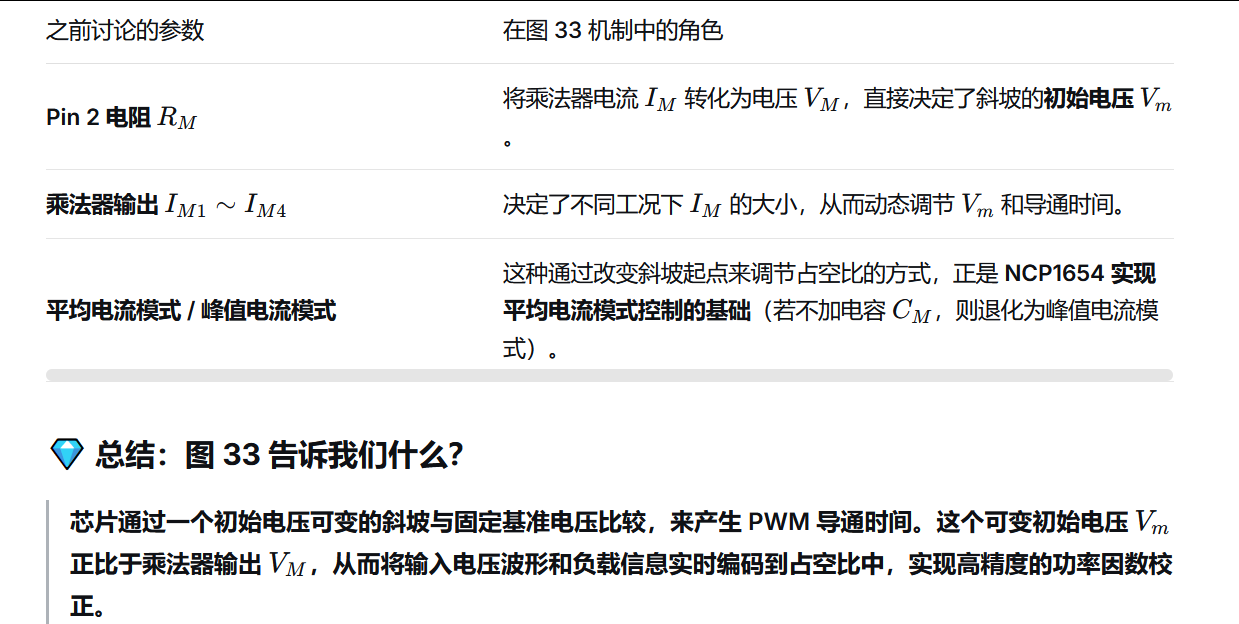 NCP1654不加电容CM就退化为峰值电流模式,是因为它内部的调制核心就是通过比较器实现的。CM电容作为外部低通滤波器,滤除了高频纹波,从而将控制对象从"峰值"转变为"平均"。这个设计非常巧妙,它通过一颗电容,将本质上是峰值电流模式的控制器,"包装"成了性能更优的平均电流模式控制器。