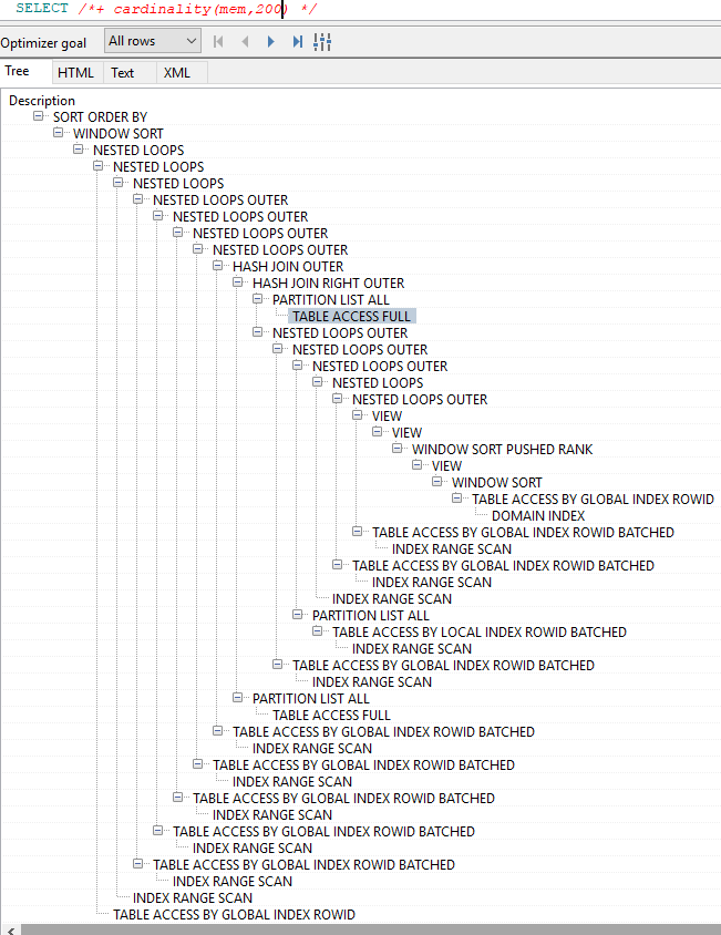 | | 4 | PARTITION RANGE ALL | | 2118 | 19062 | 287 (34)| 00:00:01 | 1 | 28 | |